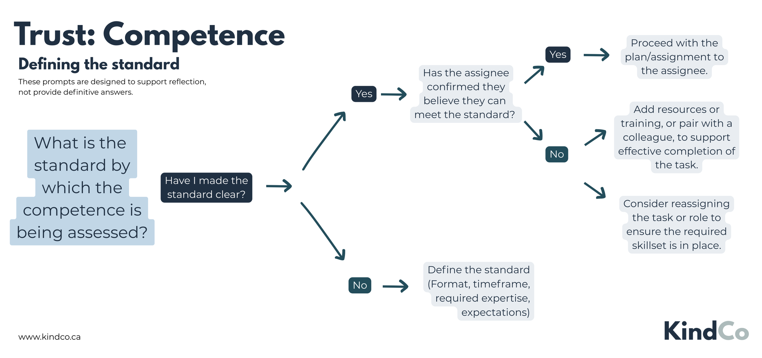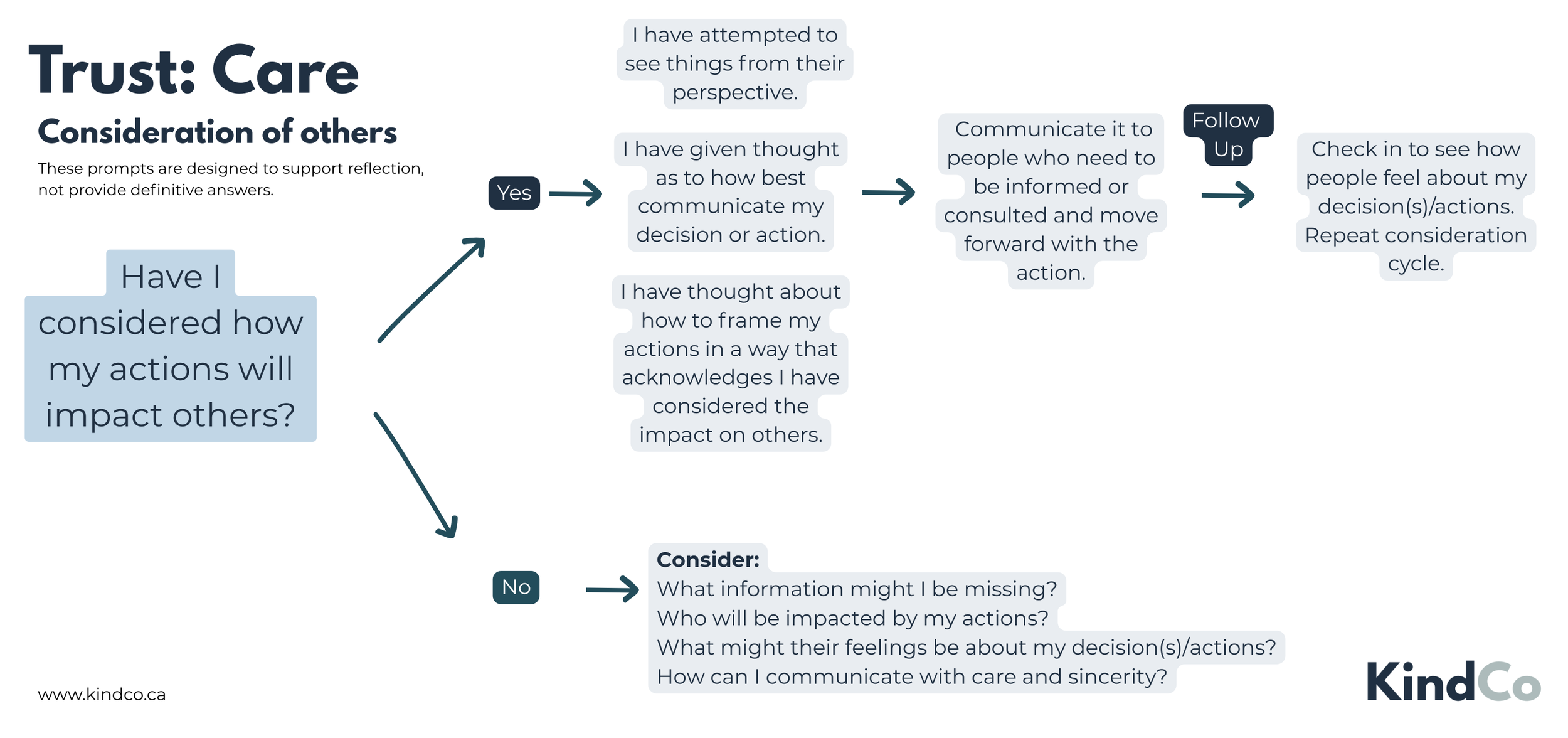 Inspired by Charles Feltman’s framework of the four distinctions of trust—reliability, care, sincerity, and competence—we created four simple decision-tree workflows to support more intentional, trust-building choices at work.