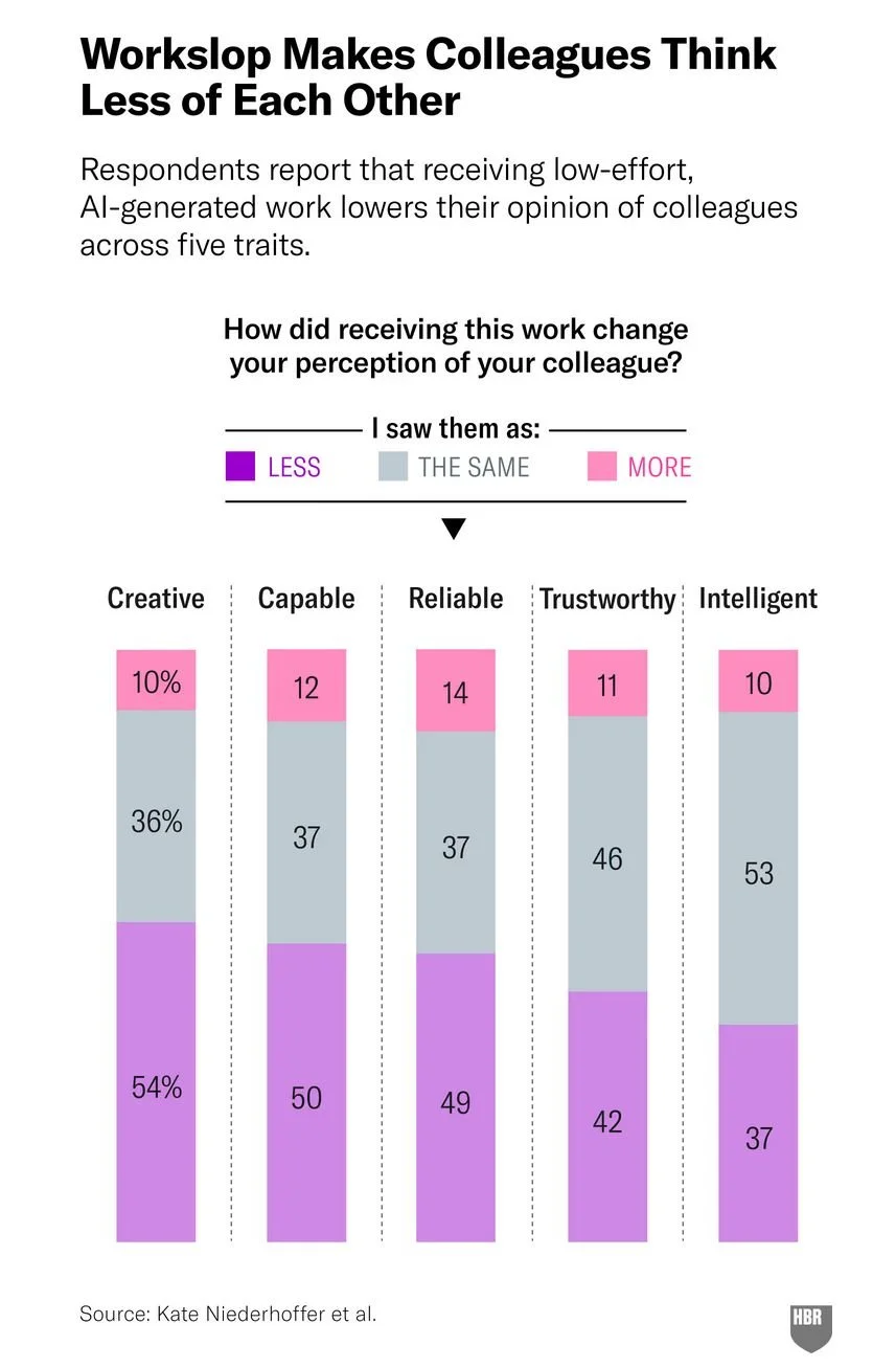 Organizational psychologist Adam Grant recently highlighted research about what happens when people receive low-quality, AI-looking work, what he calls “workslop.”
